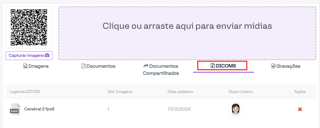 Nesta seção, é possível visualizar os arquivos no formato DICOM (ou DCM) que foram enviados ao sistema.