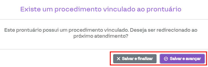 Para abrir o próximo atendimento, selecione a opção Salvar e avançar. Caso contrário, selecione a opção Salvar e finalizar.