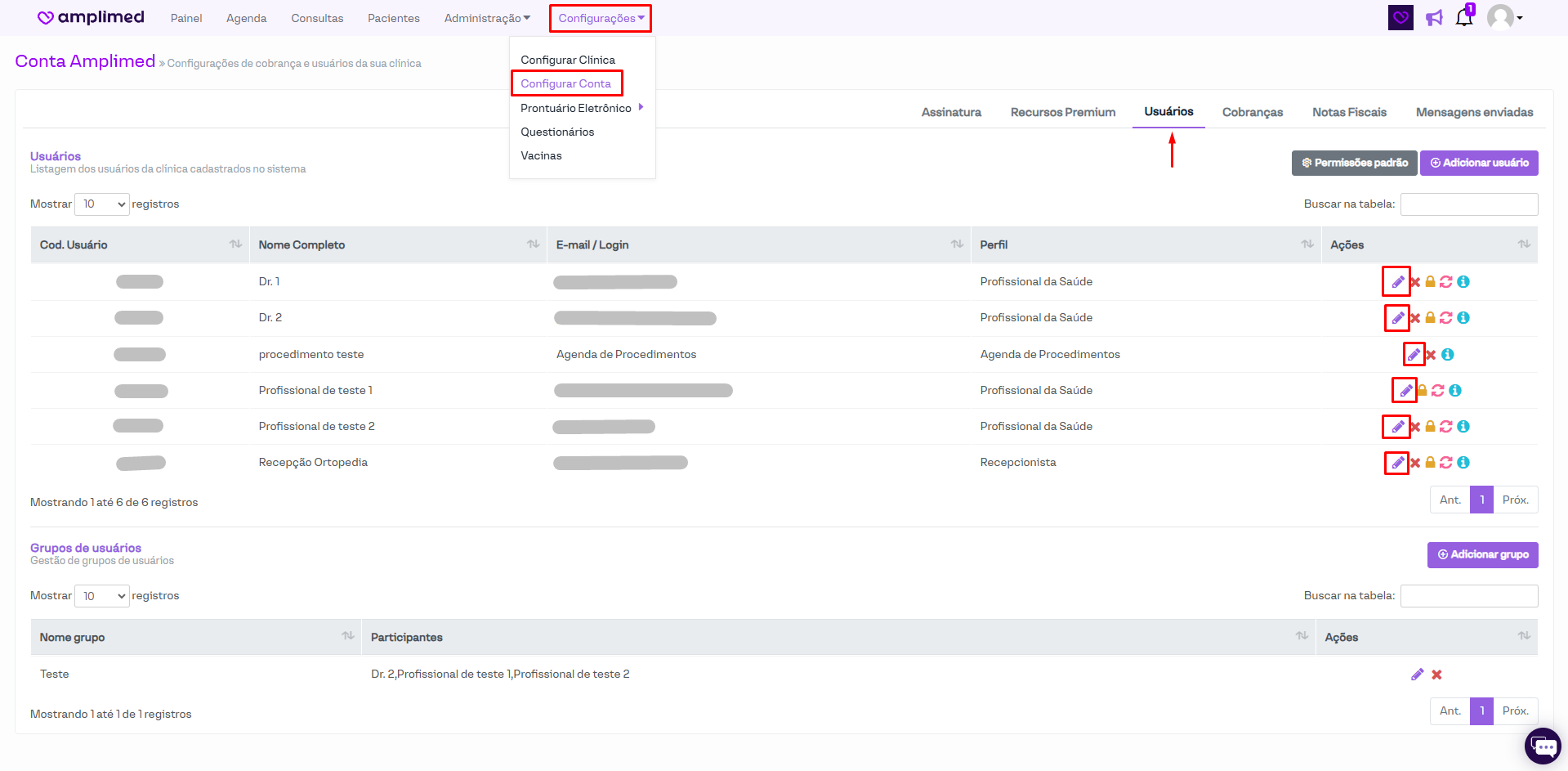 Em casos em que ocorra alguma mudanças na clínica, pode ser necessário editar um usuário, seja para que seja alterada alguma agenda ou unidade que o usuário tenha acesso, ou mesmo ajustar o tipo e as informações deste usuário. Nesses casos, a opção de realizar a edição de um usuário pode ser de grande utilidade para você.