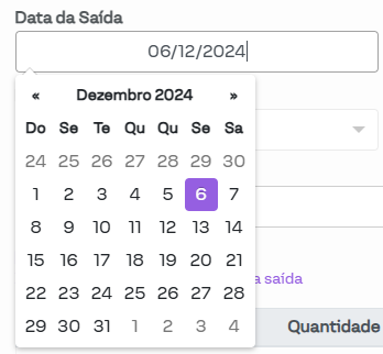 Data da Saída: Campo destinado ao registro da data em que a operação de saída foi ou será efetivada. Por padrão, o sistema preenche automaticamente com a data atual, no entanto, essa informação pode ser personalizada de acordo com a necessidade da operação.