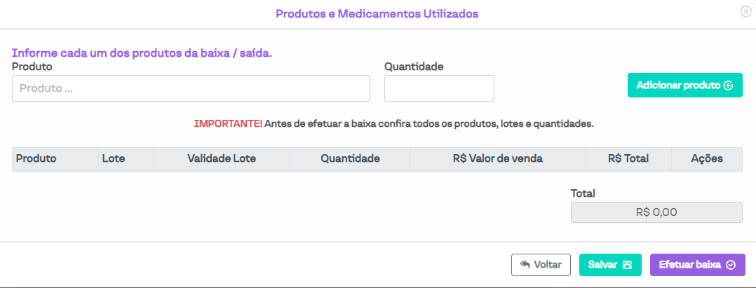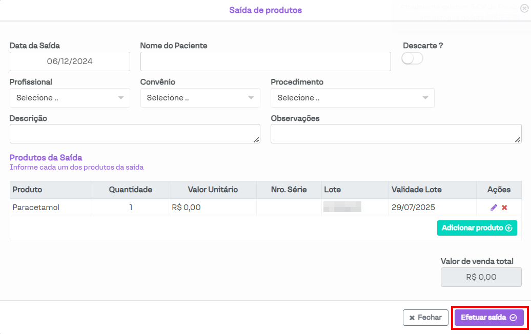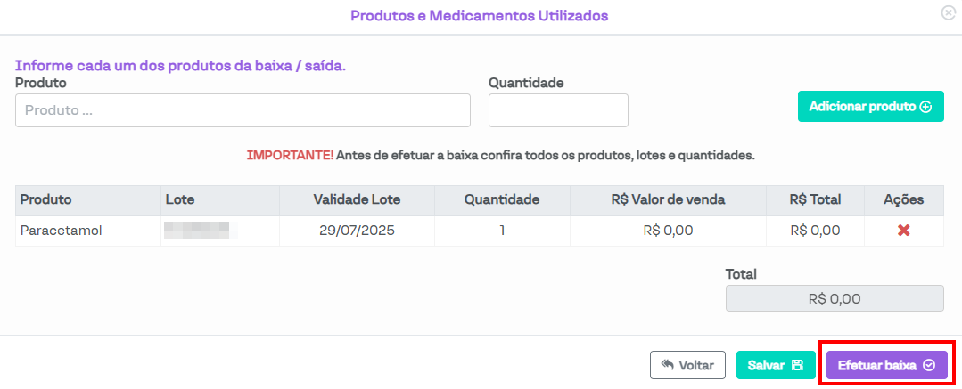 Por fim, basta clicar em “Efetuar baixa” que a saída será realizada.