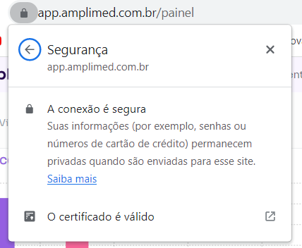 Para uma boa experiência de chamada de vídeo, informe seu navegador que o Amplimed é um sistema seguro.