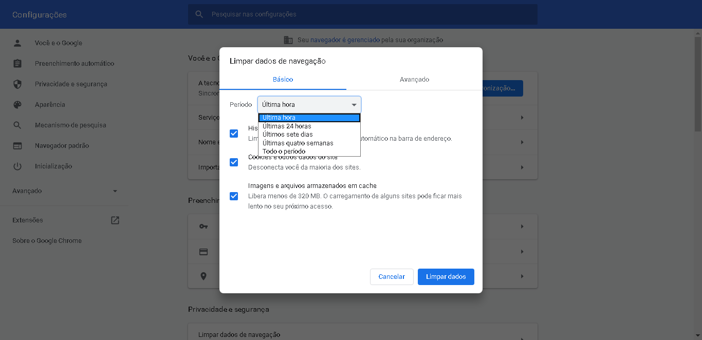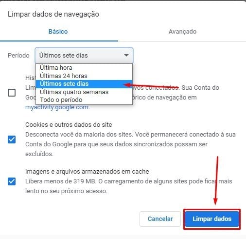 Caso ainda não consiga o acesso, pode realizar a limpeza do cache do seu navegador, seguindo as instruções abaixo: