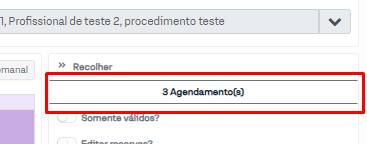 A primeira opção da agenda ao ser expandida é exibir o número de agendamentos que estão aparecendo nas agendas que estão selecionadas (seja uma agenda ou várias).