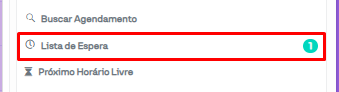 A lista de espera é utilizada para guardar um agendamento para ser inserido mais tarde na agenda. O seu uso principal é de manter o agendamento registrado, para que ele possa ser inserido na agenda assim que um horário for disponibilizado. No canto direito desta função, é exibido um ícone com o número de pacientes adicionados a lista de espera.
