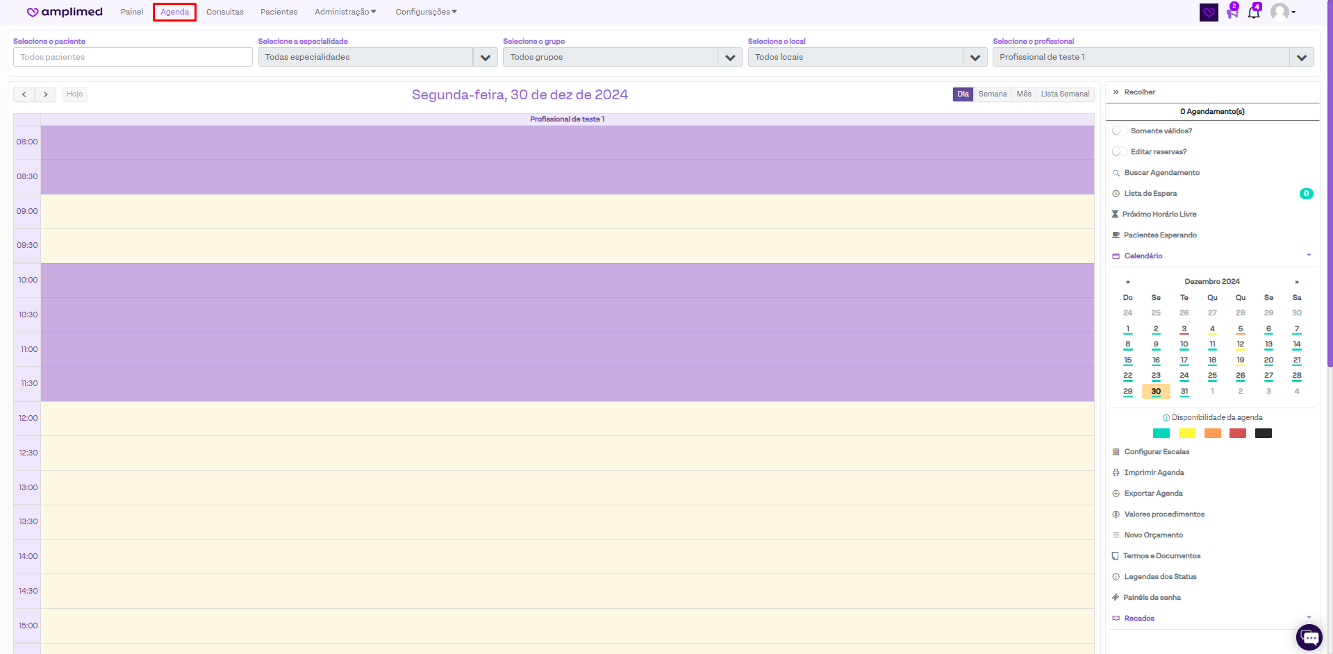Caso esteja precisando ver as outras funções do menu lateral da agenda, temos a "parte 1" deste artigo. Basta acessar este artigo aqui: Funções do menu lateral da agenda (Parte 1)