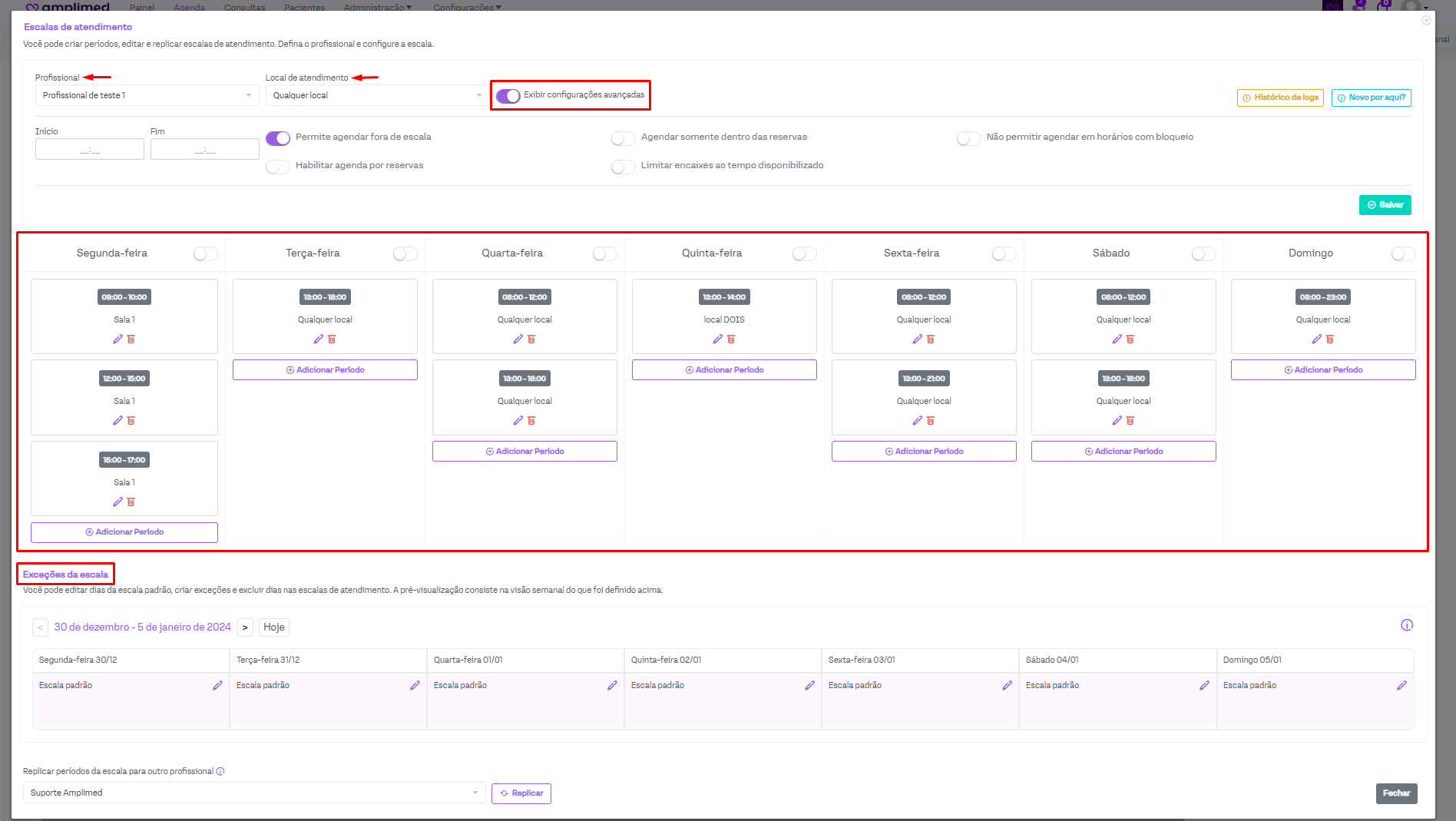 Ao clicar nesta opção, uma nova janela será aberta. Nela será possível configurar e ajustar a escala do profissional desejado, conforme desejado.