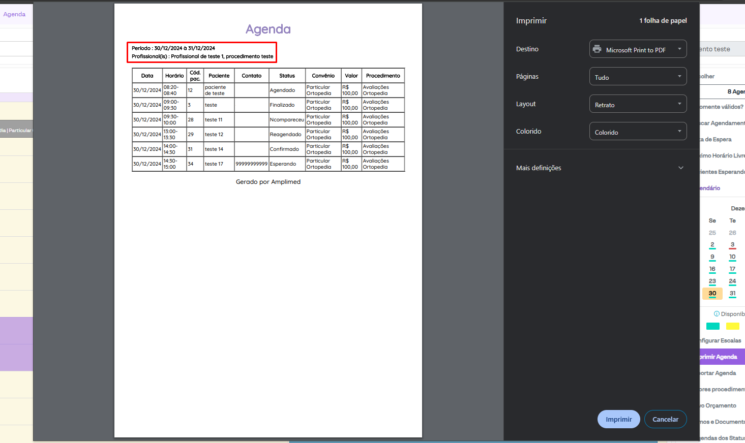 Importante: os agendamentos com status cancelados não apareceram no arquivo de impressão.