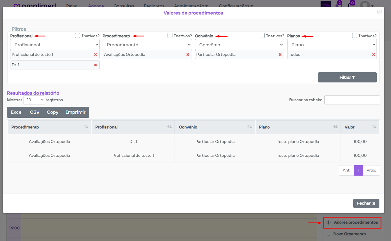 Para mais informações sobre valores de procedimentos, acesse este artigo aqui: Configurações adicionais dos procedimentos