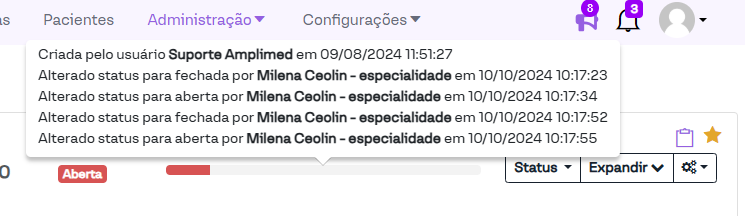 Ao realizar essa alteração, a Timeline de Eventos será atualizada conforme o ajuste feito.