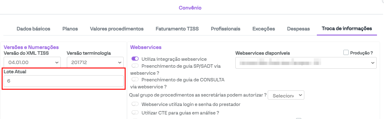 O número do lote gerado será o próximo número sequencial em relação ao que está configurado no convênio.