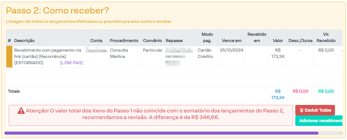Quando o pagamento recorrente gera uma nova cobrança, o sistema cria automaticamente uma nova conta a receber e gera um novo link para o paciente realizar o pagamento.