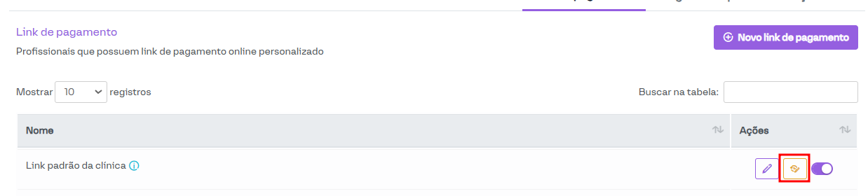 No botão amarelo, destacado na imagem abaixo, é possível visualizar as alterações realizadas no link de pagamento.