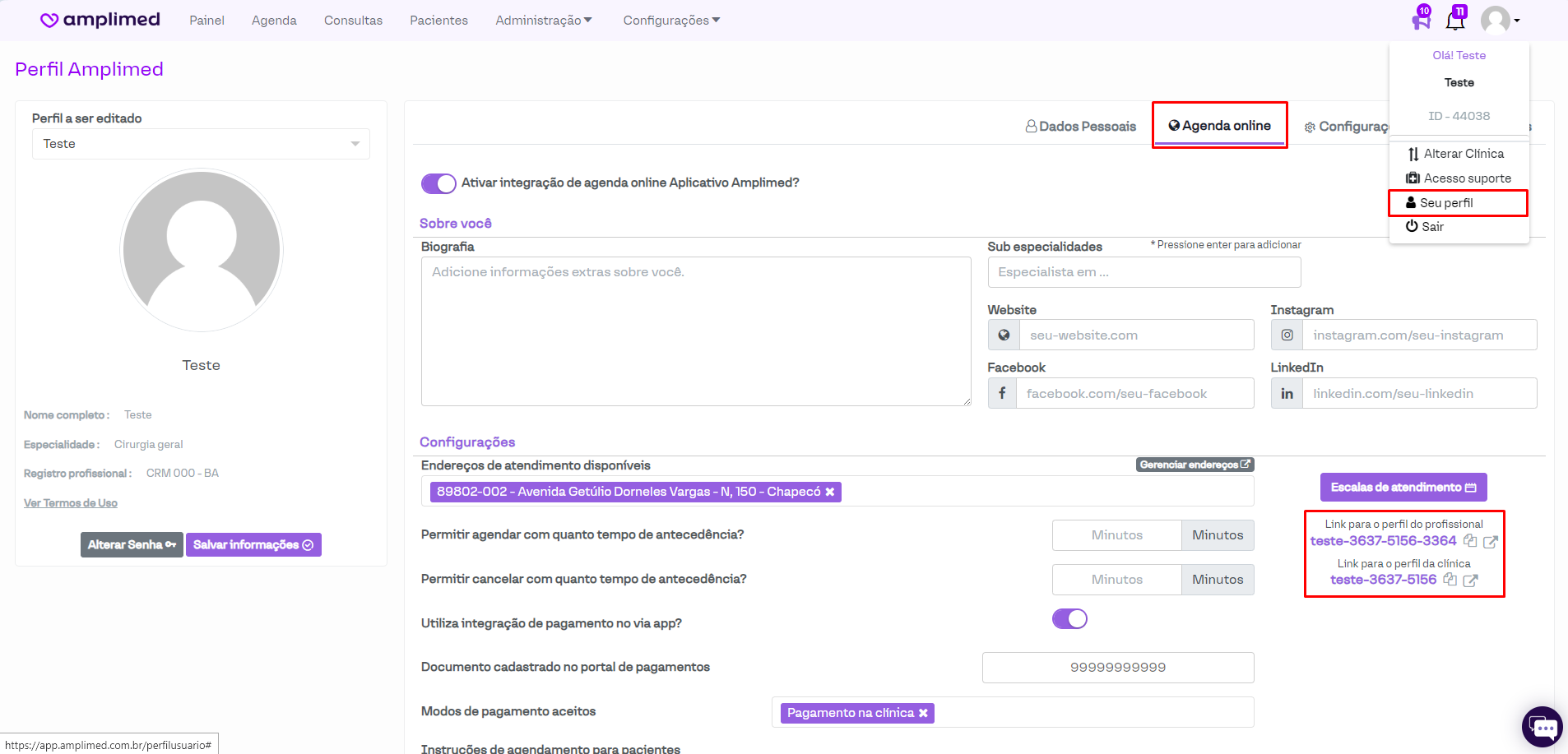Os links de agendamento online são utilizados pela clínica para que o paciente consiga estar realizando seus agendamentos com os profissionais sem a utilização do aplicativo móvel da Amplimed. Além disso, os links podem ser vinculados a sites ou redes sociais da clínica ou do profissional para que os paciente possam realizar seus agendamentos diretamente por eles.