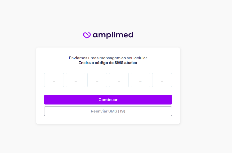 Inserindo o número e clicando em continuar o paciente será informado que receberá um código de confirmação via SMS