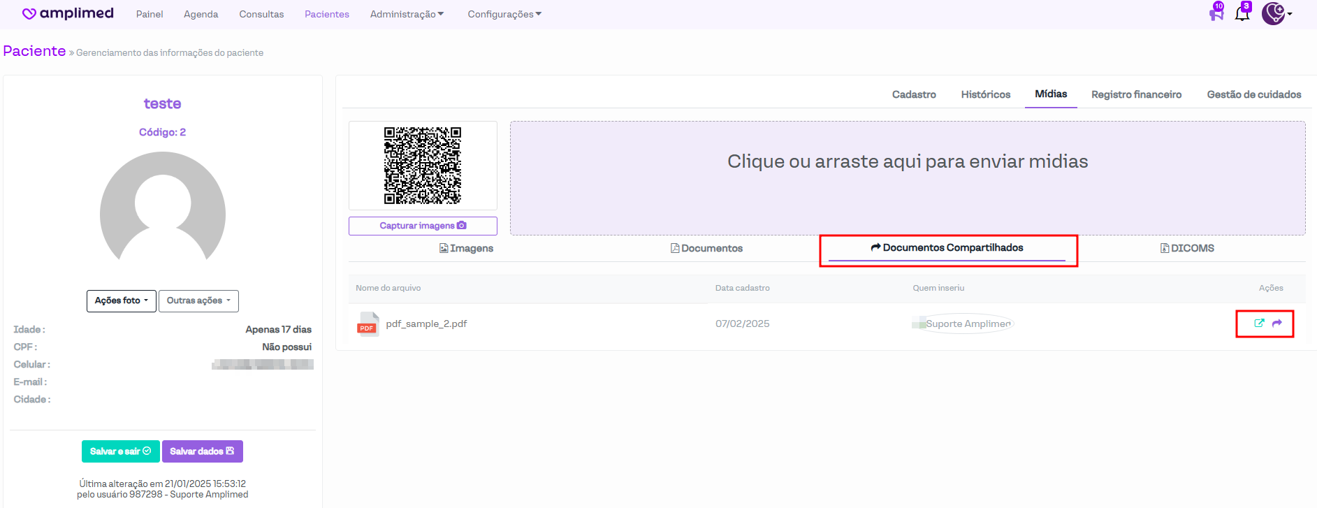 Aqui poderá verificar os documentos que foram compartilhados, podendo baixa-los ou compartilha-los novamente:
