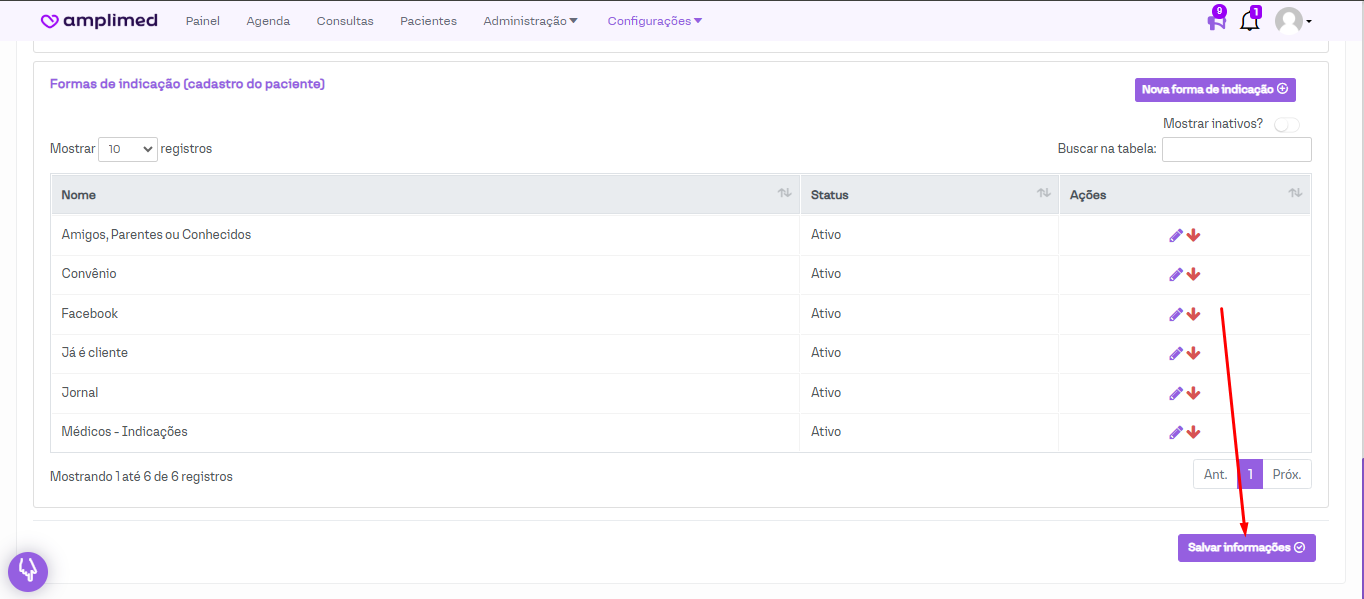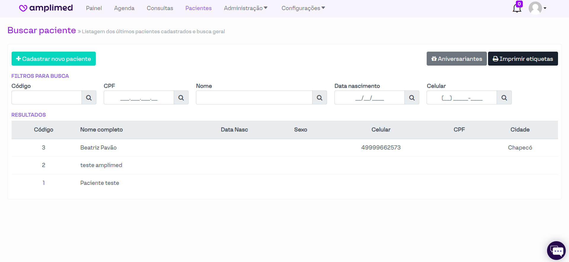 Logo após, podemos visualizar os nossos pacientes em formato de lista: