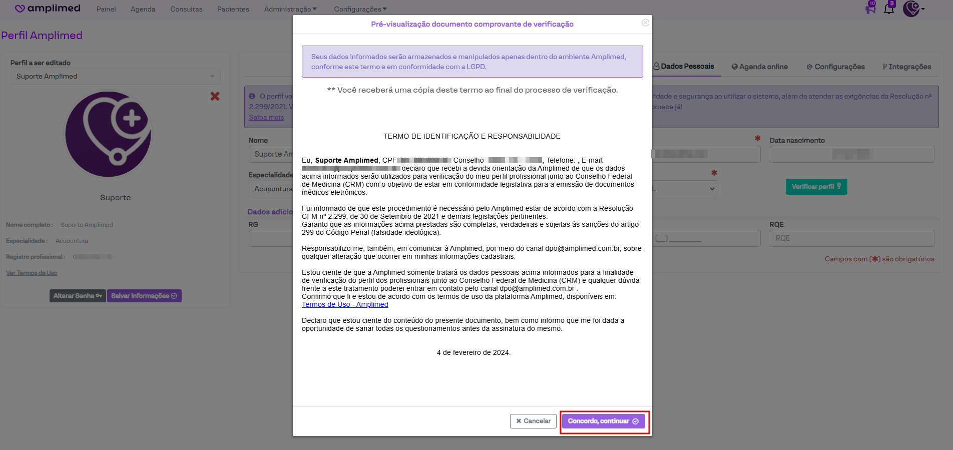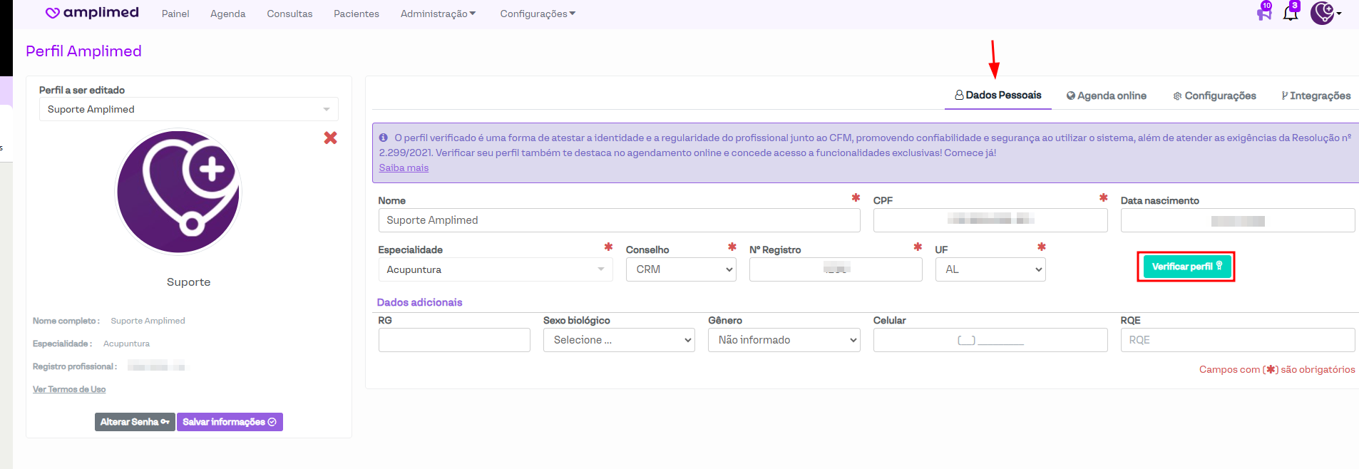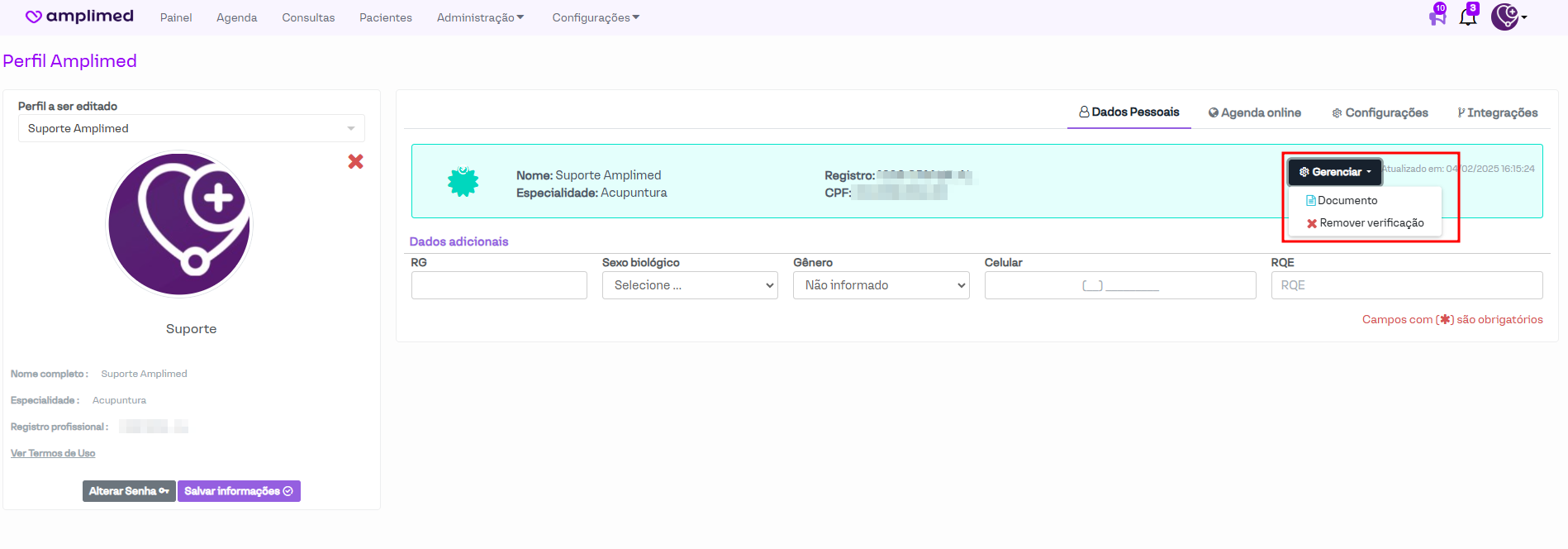 Garantir a integridade do seu perfil e das informações exibidas na emissão de atestados, documentos clínicos, perfil de agendamento online.