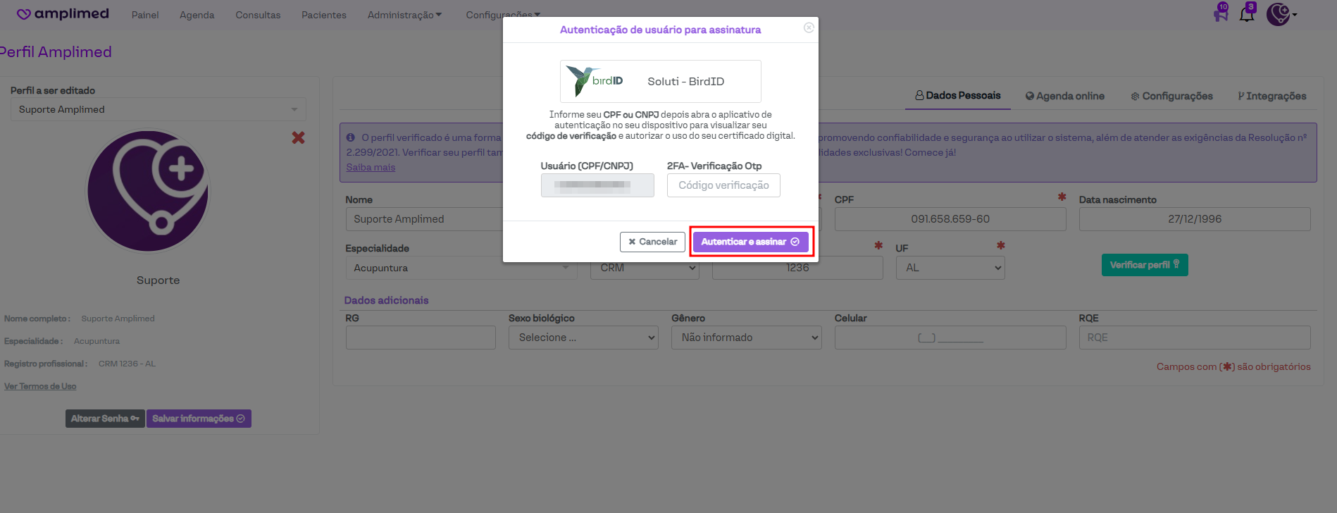Possuir um Certificado Digital do tipo A3, e configurado no sistema, sendo aceitos na Amplimed as certificadoras: SOLUTI - Bird ID, a VALID - VIDaaS e a Certisign - Remoteld. Mais detalhes abaixo de como configurar: Assinando documentos com o Certificado Digital