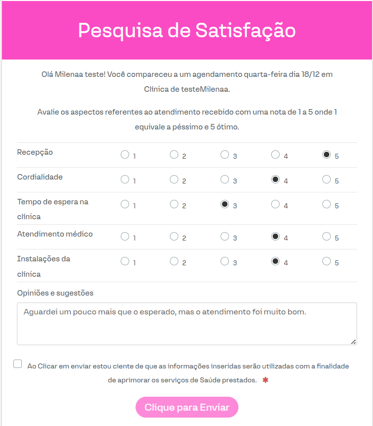 A pesquisa de satisfação é uma ferramenta para avaliar diversos aspectos da sua clínica e obter, de forma proativa, a percepção dos clientes sobre o atendimento, as instalações, o tempo de espera, entre outros fatores.
