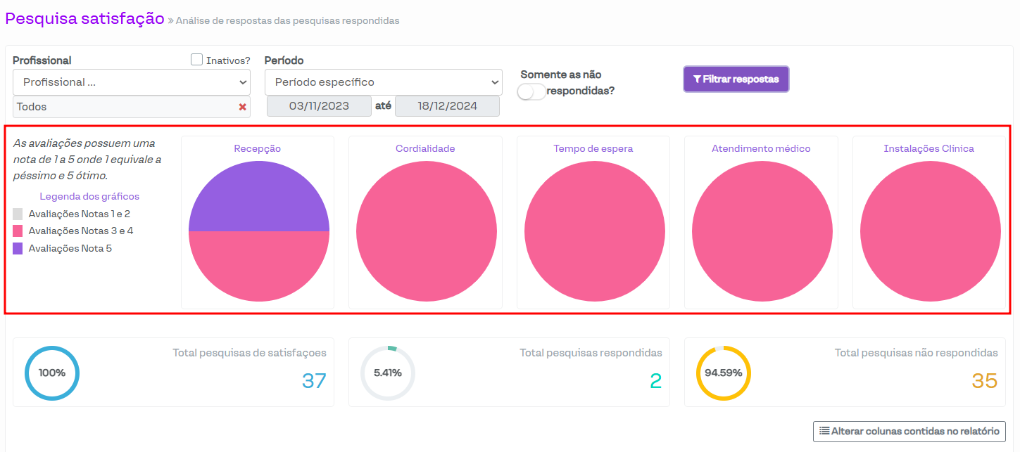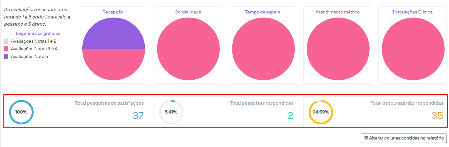 Vale ressaltar que, para pesquisas de satisfação personalizadas, não é possível realizar essa análise pelo sistema, sendo possível apenas pela plataforma utilizada para gerar a pesquisa.