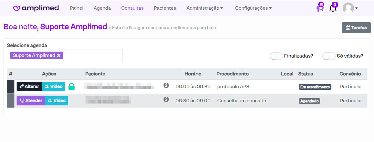 Adicionados: Permite visualizar os documentos/prescrições gerados no atendimento. Para visualizá-los, basta clicar no ícone verde em formato de "V".