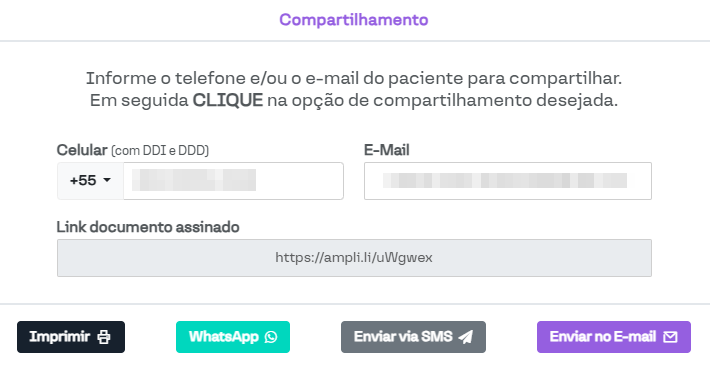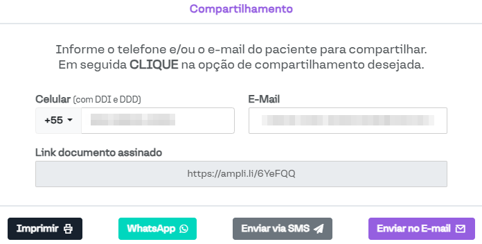 Em seguida, será aberta uma janela de compartilhamento, onde o usuário poderá escolher a melhor forma de compartilhar o pedido de exames.