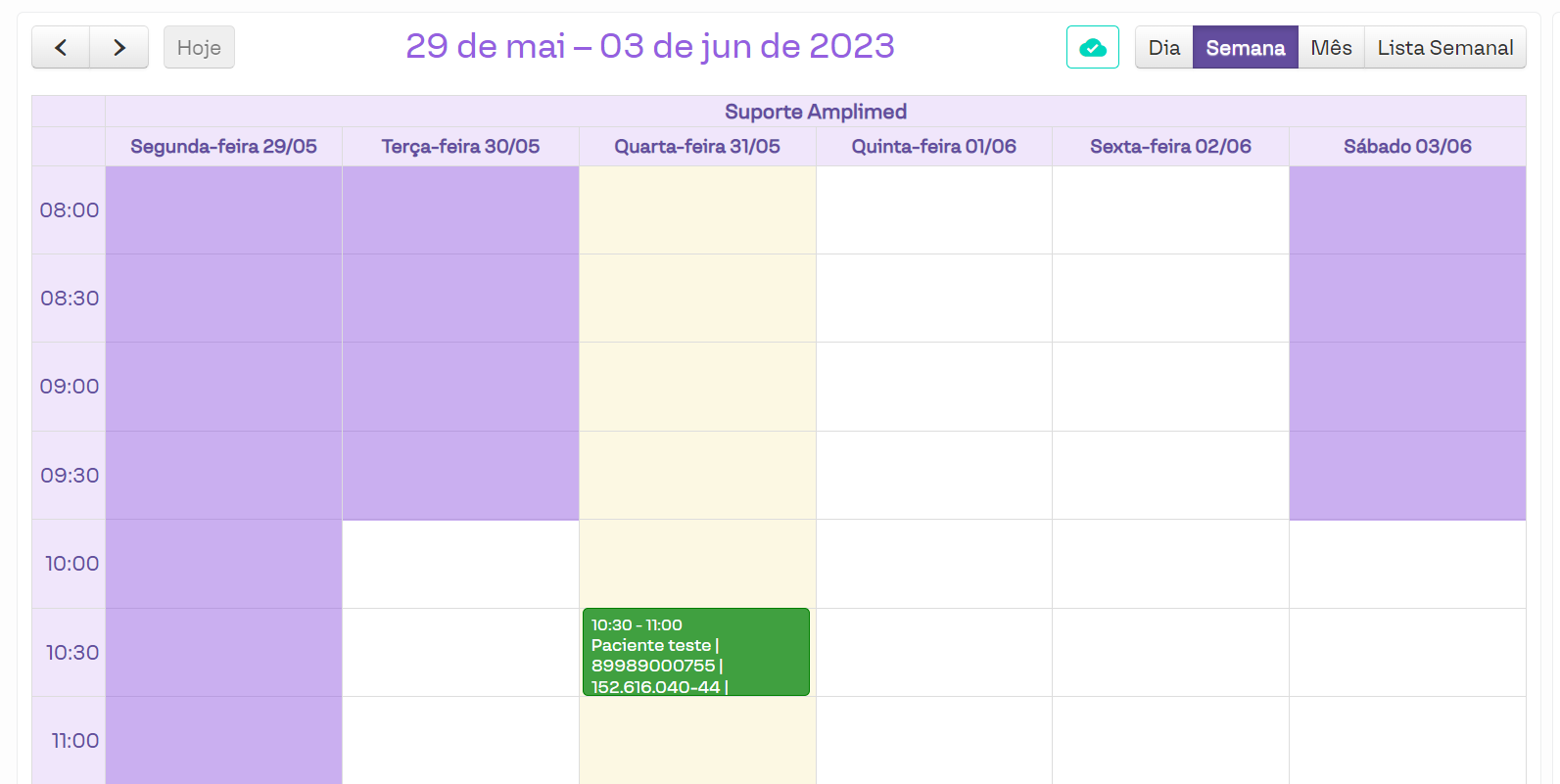 A agenda proporciona acesso rápido para vários locais do sistema. Por meio dela, é possível efetivar um recebimento de uma consulta, clicando no agendamento do paciente.
