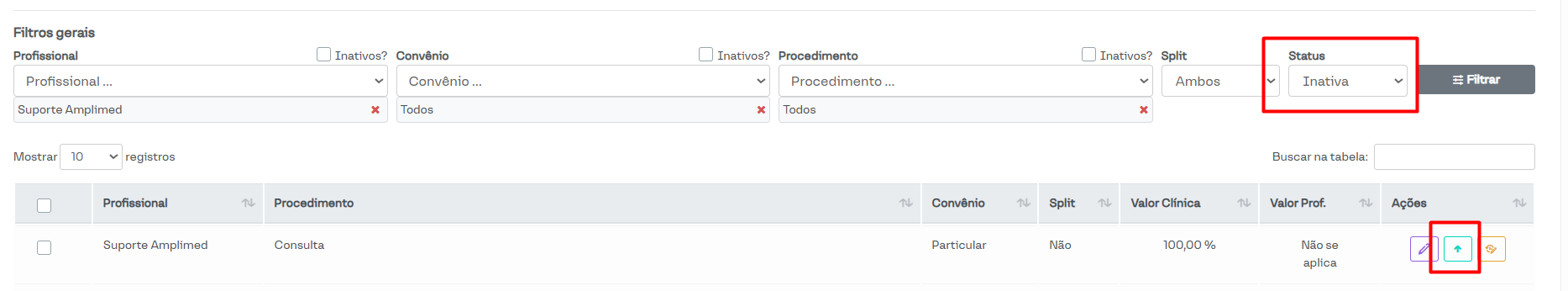 Caso seja necessário utilizar uma regra de repasse que foi desativada o processo para reativarmos ela é bem simples! Para isso, basta filtrar pelas regras inativas e então clicar na seta para cima, assim o sistema reativa a regra imediatamente.