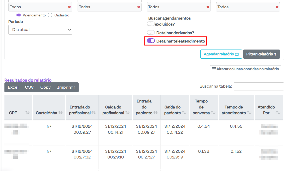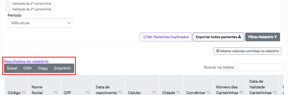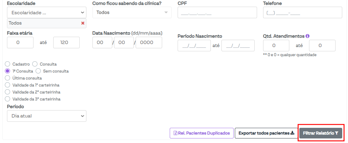 Após selecionar os filtros desejados, basta clicar em Filtrar Relatório para buscar os pacientes desejados.