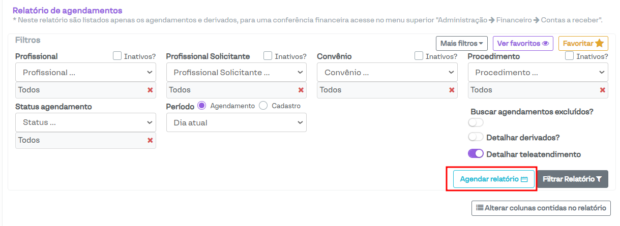 Caso o relatório seja muito extenso e o sistema não consiga gerá-lo imediatamente, é possível utilizar a opção Agendar Relatório.