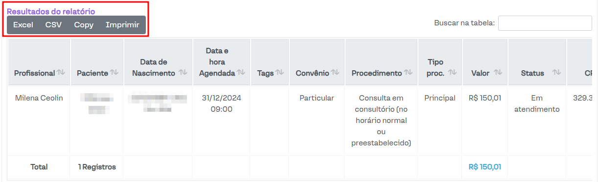 Além disso, também é possível exportar o relatório gerado, selecionando uma das opções apresentadas na imagem a seguir.