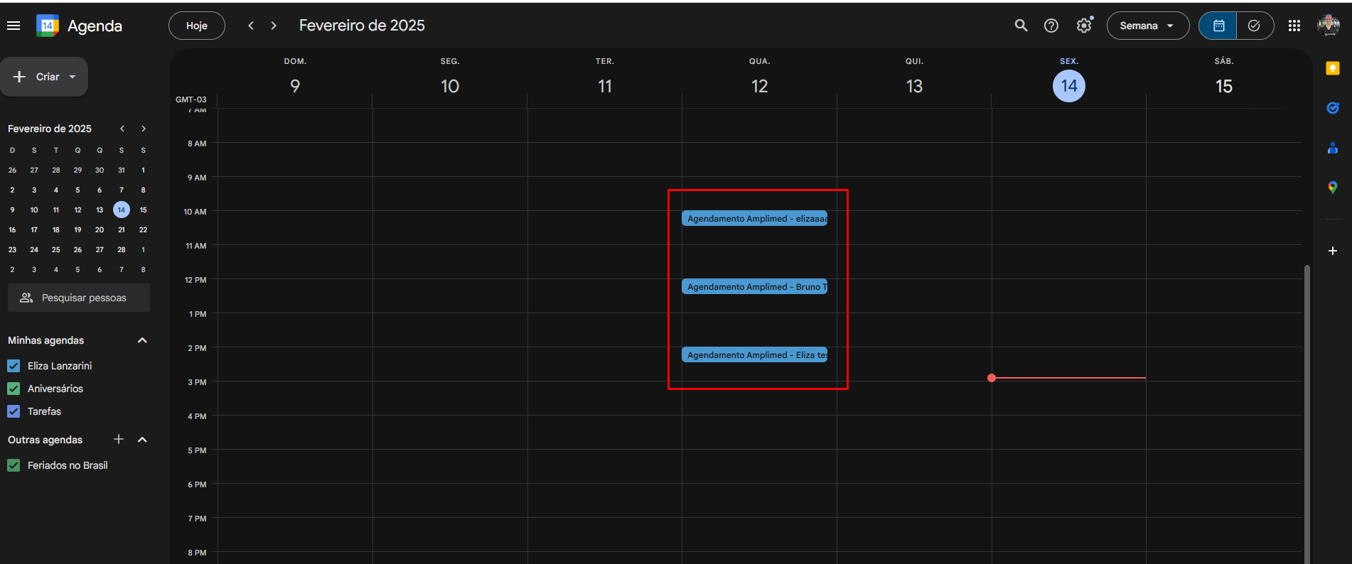 Agora todos os agendamentos realizados a partir desse momento na sincronização ativa, irão aparecer sem sua agenda do Google: