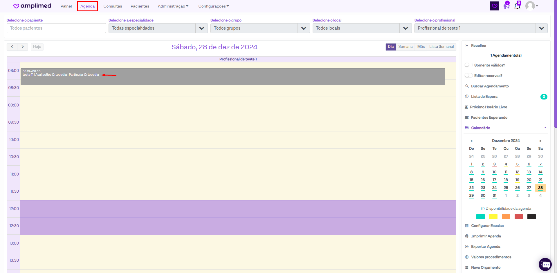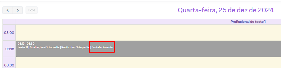 Caso ativado nos títulos de agendamento, o status secundário será exibido no agendamento, dentro da agenda do profissional.