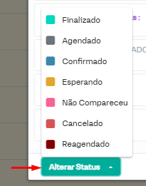 O status padrão pode ser alterado clicando em "Alterar status" e depois clicando sobre o status desejado, que esteja de acordo com o agendamento.