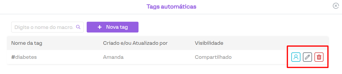 Após cadastrada a tag, é possível editar os usuários que utilizam, fazer edições e também removê-la, se necessário: