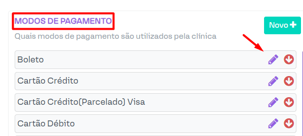 Clique no lápis roxo e configure da maneira que melhor se adequa a sua clínica: