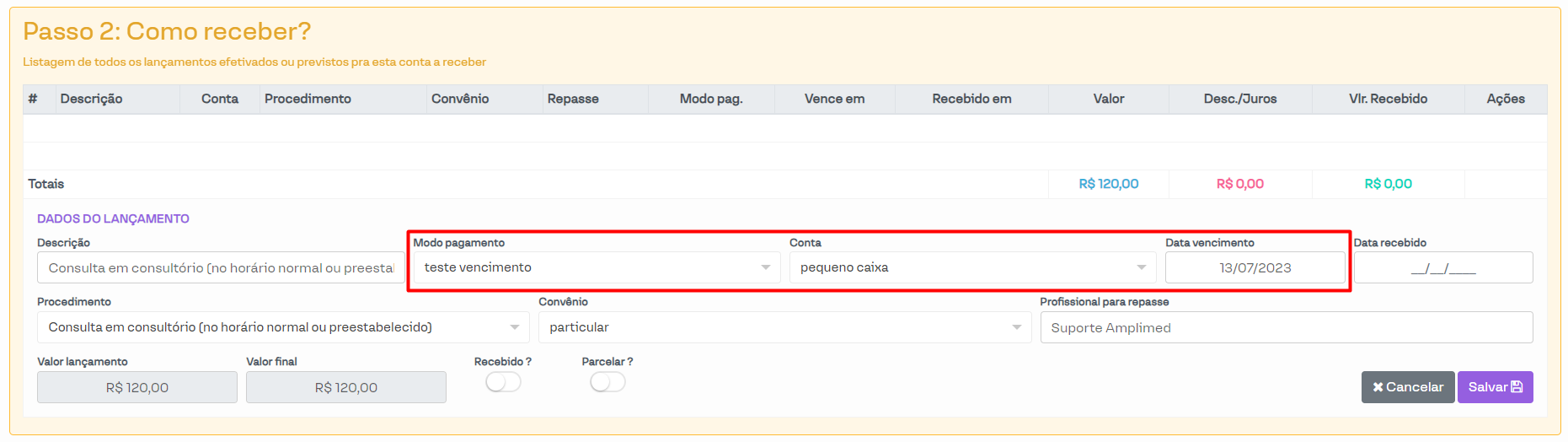 Conta padrão: para qual conta cadastrada no Amplimed este modo de pagamento irá cair.