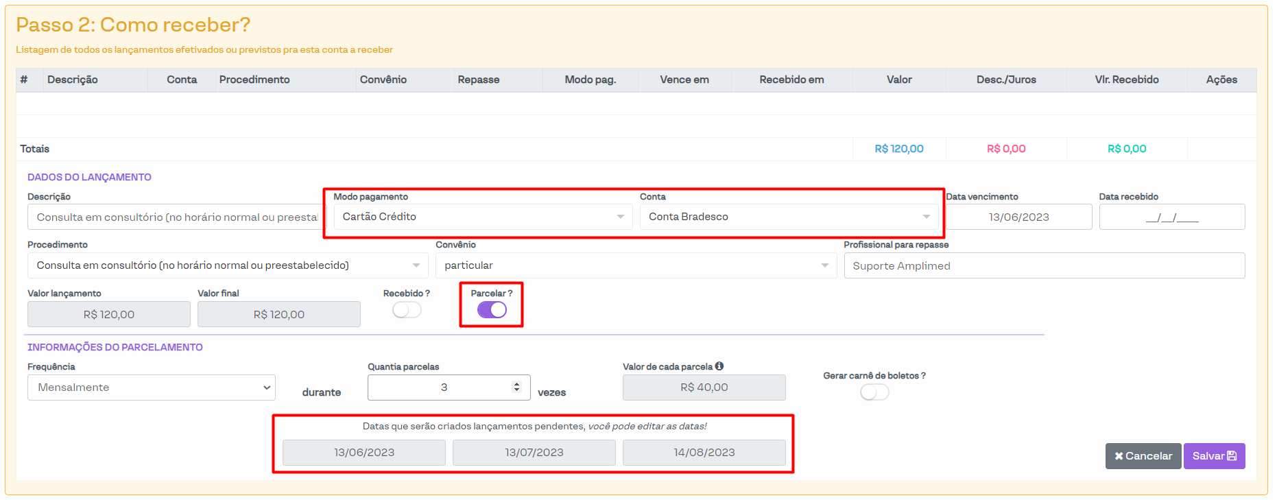 Agora, caso você queira parcelar já com as taxas descontadas em cada parcela, é necessário excluir o passo 2 e o adicionar novamente:
