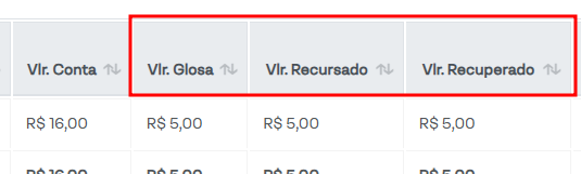 Detalhar Glosas: Habilita campos na tabela de visualização das guias, exibindo também os valores de glosa, recursado e recuperado.