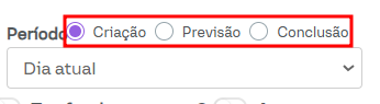 Período: Permite filtrar as tarefas por período, de acordo com as opções a seguir: