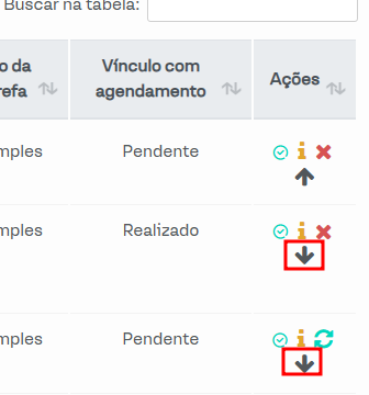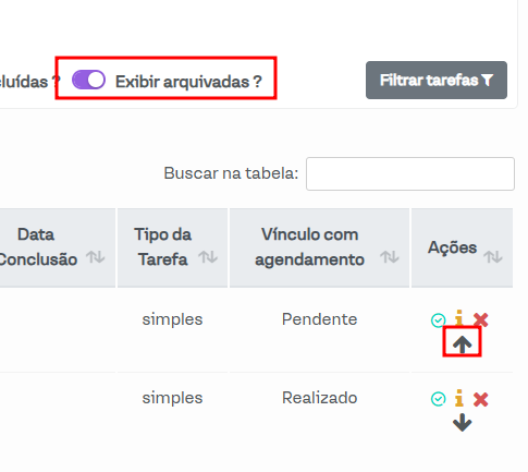 Ao clicar no ícone em forma de seta apontando para cima, é possível desarquivar a respectiva tarefa.