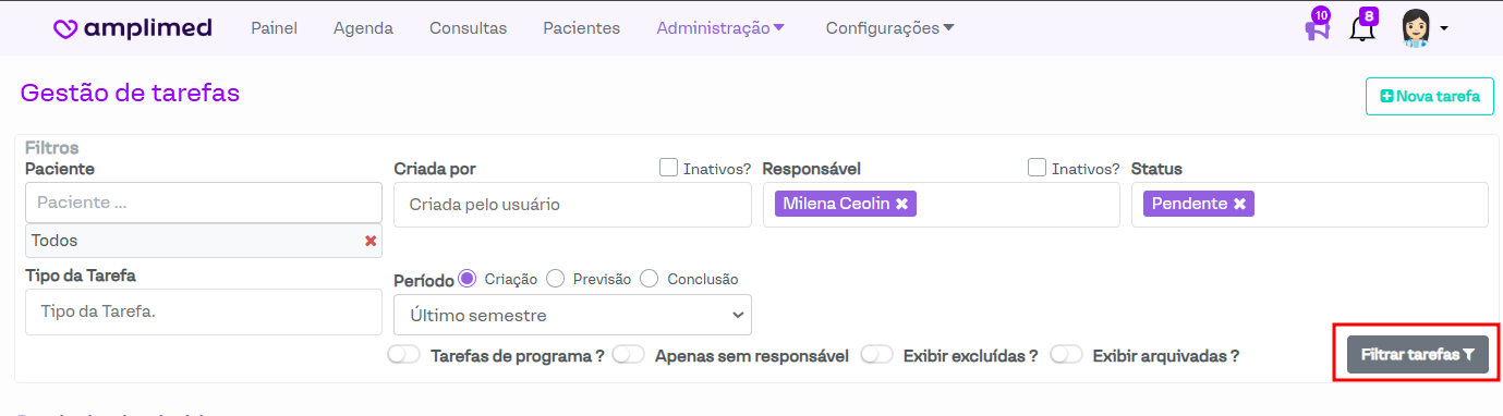 Após preencher os filtros conforme desejado, basta clicar no botão Filtrar tarefas.