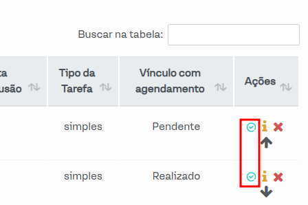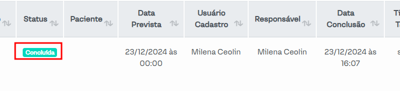 Ao realizar essa ação, o status da tarefa é alterado para Concluída.