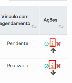 Vínculo com Agendamento: Informa se foi realizado um vínculo com agendamento, exibindo Realizado ou Pendente.